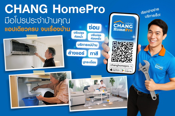 เรียกช่างง่ายแค่ปลายนิ้ว! ‘CHANG HomePro – มือโปรประจำบ้านคุณ’ แอปฯ เดียวครบ จบเรื่องบ้าน ดูแลบ้านได้ครอบคลุมด้วยบริการกว่า 40 บริการ พร้อมรับประกันงานสูงสุด 365 วัน
