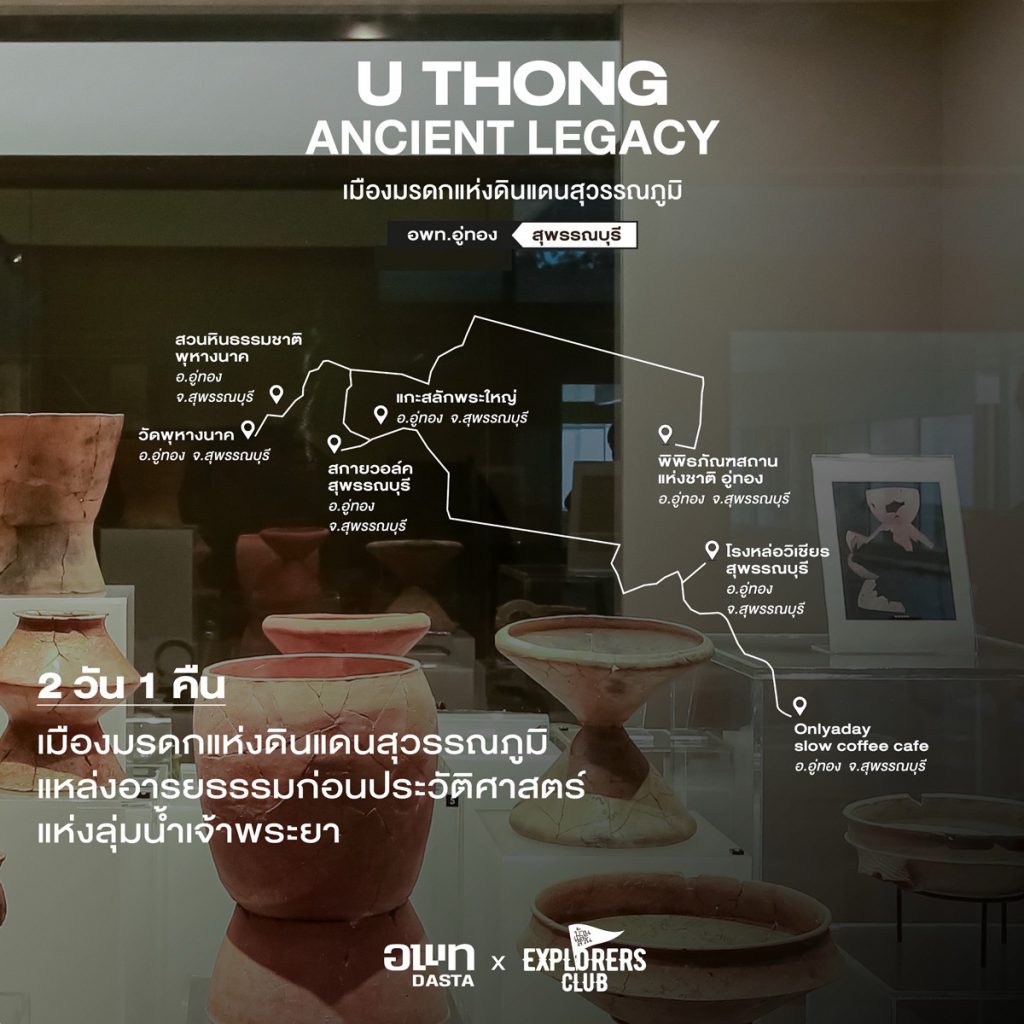 - U THONG ANCIENT LEGACY เมืองมรดกแห่งดินแดนสุวรรณภูมิ จากความรุ่งเรืองในอดีตกาล เมืองแห่งศูนย์กลางการค้าสมัยทวารวดี และจุดเผยแผ่พระพุทธศาสนา ทำให้ “อู่ทอง” คือดินแดนที่เต็มไปด้วยโบราณสถาน โบราณวัตถุ และมนต์ขลังของความรุ่งเรืองแห่งกาลเวลาที่ยังอบอวลอยู่ รอให้ทุกคนมาสัมผัส เปิดประสบการณ์ท่องเที่ยงเชิงประวัติศาสตร์ที่น่าตื่นตากับวิถีชีวิตที่น่าค้นหาของดินแดนที่ยิ่งใหญ่แห่งอุษาคเนย์