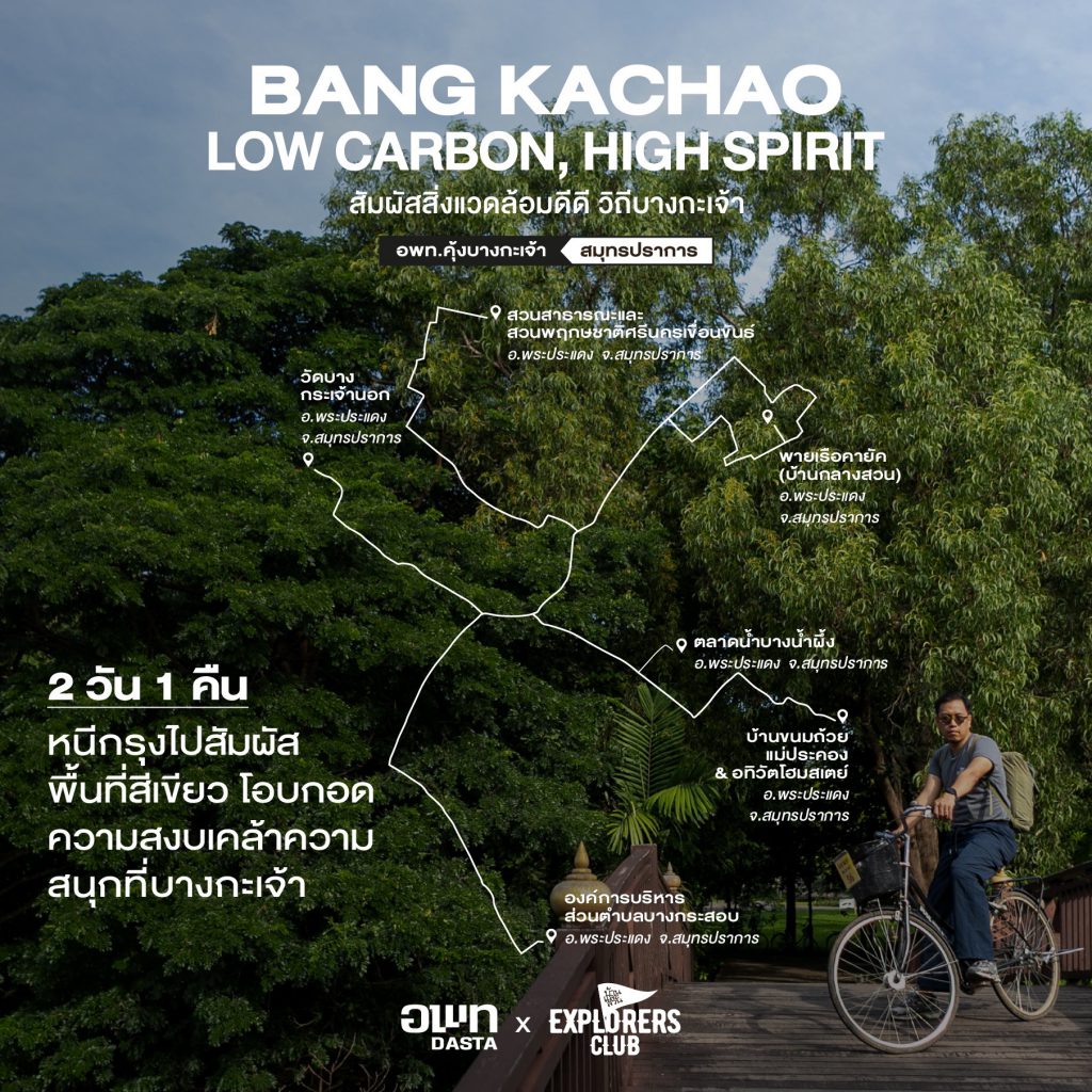 - BANG KACHAO LOW CARBON, HIGH SPIRIT สัมผัสสิ่งแวดล้อมดีดี วิถีบางกะเจ้า ไม่ใช่แค่ one day trip แต่หากอยากสัมผัสบางกะเจ้าแบบครบรส ช้อป ชิม ชิล และสนุกไปกับกิจกรรมชุมชน สามารถพักค้างคืนท่ามกลางพื้นที่สีเขียวใกล้เมืองกรุง เติมเต็มประสบการณ์การท่องเที่ยวให้ชีวิต เต็มอิ่มกับหลากเมนูท้องถิ่น และสูดลมหายใจให้เต็มปอดในพื้นที่เขียวแหล่งใหญ่ใกล้เมืองกรุงที่ “คุ้งบางกะเจ้า”