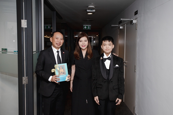 ช็อตที่ใครๆ พูดถึง คือโมเมนต์เปิดงานสุดละมุน เมื่อท่างกงสุลใหญ่อภิชาติส่งบุตรชาย น้องลัคกี้ ยศภัทร สุดแสวง กับน้องพริม ณัชชภา นิติธรรมยงค์ คู่ลีลาศจากโรงเรียนจิตรลดาออกสเต็ปอัญเชิญหนังสือถวาย ก่อนส่งเวทีต่อให้คณะโขนเด็กโชว์ลีลาตีลังกา แจกหนังสือให้แขกผู้ใหญ่กันแบบใกล้ชิดสุดๆ