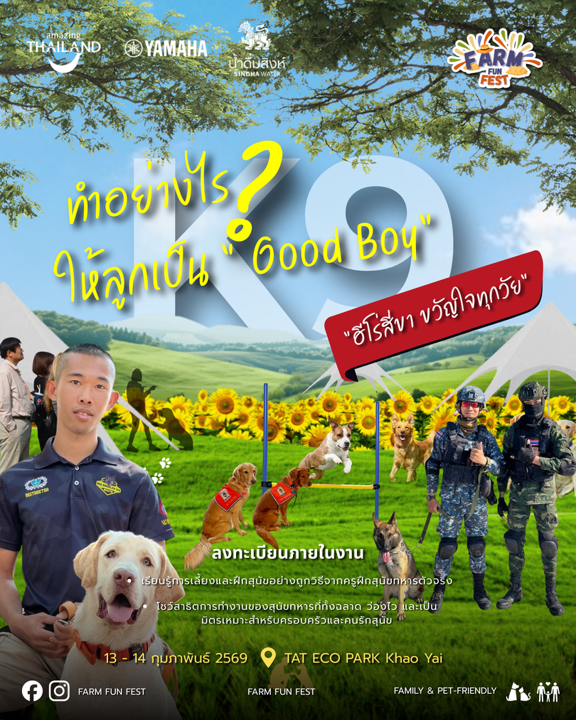 ไฮไลต์พิเศษจากน้อง ๆ K9 ฮีโร่สี่ขาที่ทั้งเก่งและน่ารัก เปิดโอกาสให้ผู้ร่วมงานได้ใกล้ชิดกับ สุนัขทหาร K9 จาก ศูนย์การสุนัขทหาร กรมการสัตว์ทหารบก และ กองพันสุนัขทหาร ชมการสาธิตการปฏิบัติงานจริงของ K9 รับฟังและเรียนรู้เทคนิคการเลี้ยงและฝึกสุนัข “ทำอย่างไรให้ลูกเป็น Good Boy” และแน่นอน…ร่วมถ่ายภาพกับน้อง ๆ อย่างใกล้ชิด ภายในงานยังมีกิจกรรมที่น่าสนใจอีกมากมาย อาทิ ศิลปะบำบัด “Heal ใจ ไปกับการวาดภาพสีน้ำ” โดยลุงน้อย สวนซ่อนศิลป์ รับฟัง Talk ในหัวข้อ “อัศจรรย์วิถีนกเงือก นักปลูกป่าธรรมชาติ” จากชมรมนกเงือก ที่พาเรารู้จักธรรมชาติและการอนุรักษ์อย่างใกล้ชิด กิจกรรม Starry Night เรื่องเล่าจากดวงดาว กลางเขาใหญ่ โดยชมรมดาราศาสตร์ปากช่อง ดูดาวยามเย็น ชวนเงยหน้ามองฟ้า ใช้เวลาเงียบ ๆ กับตัวเองและคนข้างกาย