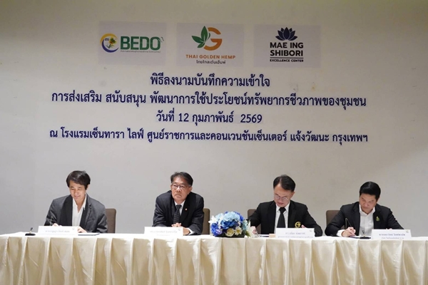 วันที่ 12 กุมภาพันธ์ 2569 สำนักงานพัฒนาเศรษฐกิจจากฐานชีวภาพ (องค์กรมหาชน) หรือ BEDO ประกาศความร่วมมือครั้งสำคัญ ลงนามบันทึกความเข้าใจ (MOU) เพื่อร่วมกันขับเคลื่อนและยกระดับพัฒนา และขยายผลผลิตภัณฑ์เส้นใยธรรมชาติและสีย้อมธรรมชาติจากภูมิปัญญาไทยสู่ระดับอุตสาหกรรมและเชิงพาณิชย์อย่างเต็มรูปแบบโดยได้รับเกียรติจาก ดร.เกษมสันต์ จิณณวาโส ประธานกรรมการ BEDO เป็นประธานในพิธี พร้อมด้วย ดร.ธนิต ชังถาวร ผู้อำนวยการ BEDO นายสุวีร์ งานดี รองผู้อำนวยการ BEDO นายสิทธิชัย เสรีส่งแสง ที่ปรึกษา BEDO  ผู้บริหาร และเจ้าหน้าที่ BEDO ร่วมเป็นสักขีพยาน ณ โรงแรมเซ็นทารา ไลฟ์ ศูนย์ราชการและคอนเวนชันเซ็นเตอร์ แจ้งวัฒนะ ความร่วมมือในครั้งนี้มีวัตถุประสงค์หลัก เพื่อสร้าง “ห่วงโซ่คุณค่า” (Value Chain) ให้กับทรัพยากรชีวภาพ โดยอาศัยความเชี่ยวชาญจาก 3 ภาคส่วน ได้แก่: