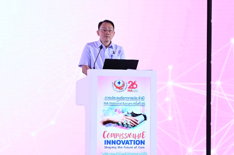 เมื่อวันที่ 11 มี.ค. 2569 ที่อาคารอิมแพ็คฟอรั่ม เมืองทองธานี ภายในงานประชุมวิชาการประจำปี HA National Forum ครั้งที่ 26 จัดโดยสถาบันรับรองคุณภาพสถานพยาบาล (องค์การมหาชน) หรือ สรพ. มีการจัดเวที Visionary System Leaders Talks นโยบายสุขภาพไทยยุคใหม่: บูรณาการนวัตกรรมที่ทันสมัยกับความใส่ใจความเป็นมนุษย์