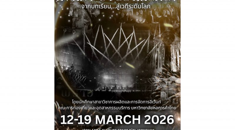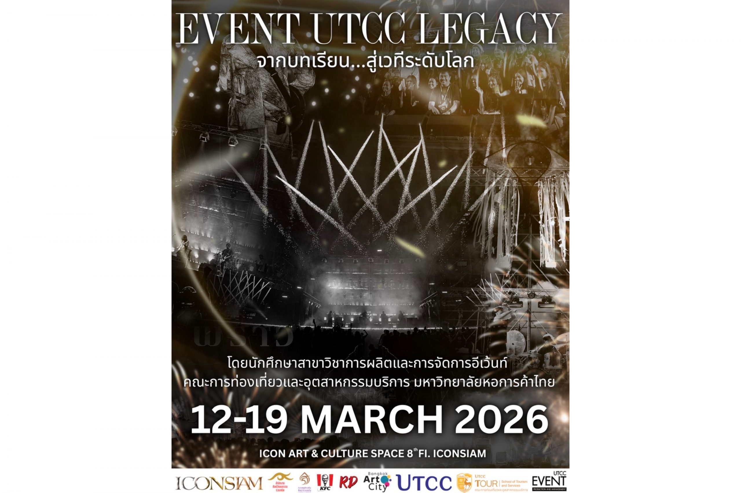 สาขาวิชาการผลิตและการจัดการอีเว้นท์ คณะการท่องเที่ยวและอุตสาหกรรมบริการ มหาวิทยาลัยหอการค้าไทย จัดนิทรรศการ “EVENT UTCC LEGACY: จากบทเรียนสู่เวทีระดับโลก A Showcase of Student Event Projects” เพื่อเปิดพื้นที่นำเสนอผลงานของนักศึกษาชั้นปีที่ 3 และชั้นปีที่ 4 ซึ่งเกิดจากกระบวนการเรียนรู้ผ่านการลงมือปฏิบัติจริง ภายใต้แนวคิด “จากบทเรียน…สู่เวทีระดับโลก” ที่สะท้อนแนวคิดจากบทเรียนในห้องเรียนสู่การออกแบบและพัฒนาโปรเจกต์ในด้านงานคอนเสิร์ต เทศกาลดนตรี และการผลิตงานอีเว้นท์ ที่เชื่อมโยงกับอุตสาหกรรมอีเว้นท์และเศรษฐกิจสร้างสรรค์อย่างมืออาชีพ