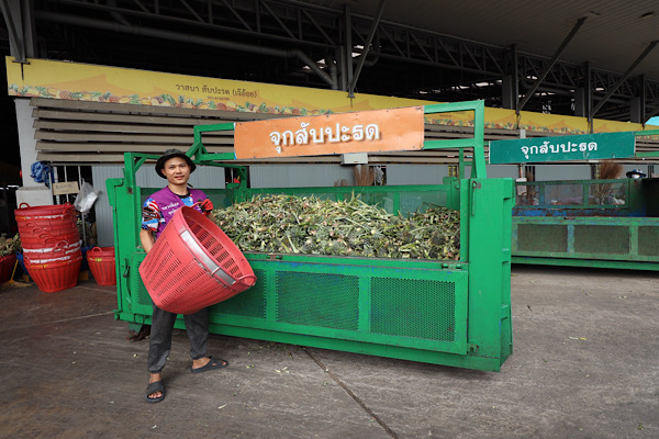 - การเพิ่มมูลค่าจากขยะ (Waste to Value): ตลาดคัดแยกขยะอินทรีย์และรีไซเคิลอย่างเป็นระบบ สร้างรายได้รวมประมาณ 26 ล้านบาทต่อปี มีการนำขยะอินทรีย์ไปแปรรูปเป็นอาหารสัตว์ พร้อมพัฒนาผลิตภัณฑ์จากของเหลือใช้ เช่น สบู่เหลวจากเปลือกส้มโอเพื่อใช้ในห้องน้ำทั่วทั้งตลาด ปัจจุบันผลิตได้ 14,000 ลิตรต่อปี และช่วยลดค่าใช้จ่ายได้ 180,000 ต่อปี และในปีนี้ 2026 ตลาดมีแผนผลิตปุ๋ยจากขยะอินทรีย์ คาดว่าจะสามารถสร้างรายได้กว่า 77 ล้านบาทต่อปี รวมถึงการนำขยะส่วนที่เหลือไปผลิตเป็นเชื้อเพลิง (RDF) ซึ่งจะช่วยลดค่าใช้จ่ายในการกำจัดขยะได้เพี่มอีกประมาณ 5 ล้านบาทต่อปี