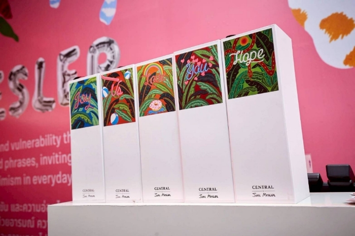 นิทรรศการครั้งนี้นำเสนอผลงานซิกเนเจอร์ของ Joel Mesler ที่ได้รับการคัดสรรเป็นพิเศษ ณ ชั้น G ห้างสรรพสินค้าเซ็นทรัลชิดลม ถ่ายทอดการเล่าเรื่องผ่านตัวอักษร สีสัน และมิติทางอารมณ์ในแบบฉบับอันเป็นเอกลักษณ์ของศิลปิน เปิดมุมมองใหม่ของการเสพงานศิลปะที่ทั้งเข้าถึงง่ายและเปี่ยมความหมาย ต่อยอดประสบการณ์ด้วย Pop-up Experience ณ เดอะ คอร์นเนอร์ ชั้น G ซึ่งถูกเนรมิตให้เป็น “Jo’s Playground” อินสตอลเลชันศิลปะแห่งจินตนาการในรูปแบบสนามเด็กเล่น ผสานองค์ประกอบขนาดใหญ่ สีสันสดใส และมุมถ่ายภาพที่เปิดโอกาสให้ผู้ชมได้สำรวจและมีปฏิสัมพันธ์กับงานศิลป์อย่างอิสระ โดยมีไฮไลต์เป็น Interactive Balloon Installation ที่ชวนทุกคนร่วมสร้างสรรค์ผลงานผ่านการเขียนข้อความแห่งความหวัง ความรัก และพลังบวกลงบนบอลลูน ซึ่งจะค่อย ๆ ก่อรูปเป็นผลงานที่สะท้อนพลังของการมีส่วนร่วม บรรยากาศภายในนิทรรศการจากเครื่องเสียงชั้นนำระดับโลกอย่าง Devialet แบรนด์เครื่องเสียงไฮเอนด์จากฝรั่งเศสที่โดดเด่นด้วยเทคโนโลยีเสียงอันล้ำสมัย ให้มิติของเสียงที่คมชัด โปร่งใส และทรงพลัง ช่วยเติมเต็มประสบการณ์การชมงานให้เปี่ยมด้วยอรรถรสและความสุนทรีย์ยิ่งขึ้น อีกหนึ่งไฮไลต์สำคัญคือชุดผลงาน “Sunrise to Sunset” ที่ถ่ายทอดการเปลี่ยนผ่านของช่วงเวลาในแต่ละวัน ผ่านการใช้สีและถ้อยคำอันเป็นเอกลักษณ์ สื่อถึงการเดินทางของอารมณ์ ความสัมพันธ์ และการค้นหาความหมายของชีวิตในมุมมองของศิลปิน