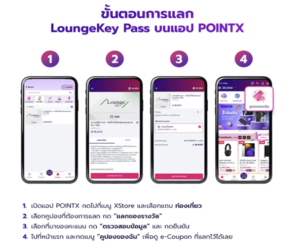 เพื่อฉลองความร่วมมือในครั้งนี้ POINTX ได้จัดโปรโมชัน Flash Deal ใช้คะแนน POINTX แลกรับ e-Coupon LoungeKey Pass ในเรทพิเศษ โดย e-Coupon LoungeKey Pass มูลค่า 1,427 บาท สามารถแลกได้โดยใช้พอยท์เพียง 15,456 POINTX จากปกติ 18,400 POINTX ตั้งแต่ วันที่ 25 มีนาคม 2569 ถึงวันที่ 25 เมษายน 2569 นี้ เพื่อชวนลูกค้า POINTX ยกระดับทุกการเดินทางให้สะดวกสบายกว่าที่เคย