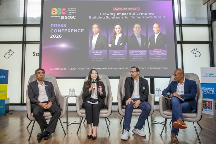 กรุงเทพฯ, 23 เมษายน 2569 – สถาบันบัณฑิตบริหารธุรกิจ ศศินทร์ แห่งจุฬาลงกรณ์มหาวิทยาลัย (Sasin School of Management) ผู้จัดงานการแข่งขันประกวดแผนธุรกิจ Bangkok Business Challenge 2026 Powered by SCGC ซึ่งได้รับการสนับสนุนหลักอย่างเป็นทางการจาก เอสซีจี เคมิคอลส์ หรือ SCGC ผู้นำธุรกิจพอลิเมอร์และโซลูชันครบวงจรเพื่อความยั่งยืน ธนาคารกสิกรไทย (KBank) และบริษัท บุญรอดบริวเวอรี่ จำกัด ร่วมด้วย Ecosystem Partner ได้แก่ 2C2P, มูลนิธิแม่ฟ้าหลวง ในพระบรมราชูปถัมภ์, สำนักงานจัดการทรัพย์สิน จุฬาลงกรณ์มหาวิทยาลัย, บริษัท สราญรมย์เคเทอริง จำกัด และเครือข่ายแอสเพนเพื่อผู้ประกอบการเพื่อการพัฒนา เดินหน้าจัดเวทีการแข่งขันสำหรับนิสิต-นักศึกษาจากทั่วโลกได้ร่วมแสดงศักยภาพเป็นปีที่ 24 นำเสนอแนวคิดและแผนธุรกิจภายใต้แนวคิด “Growing Impactful Ventures: Building Solutions for Tomorrow’s World” มุ่งผลักดันไอเดียนวัตกรรมใหม่ที่ขับเคลื่อนด้วยแนวคิดด้านความยั่งยืน (Sustainability) และนวัตกรรมสีเขียว (Green Innovation) ซึ่งไม่เพียงสร้างการเติบโต แต่ต้องสร้างผลกระทบเชิงบวกต่อเศรษฐกิจ สังคม และสิ่งแวดล้อมให้สังคมในระยะยาว